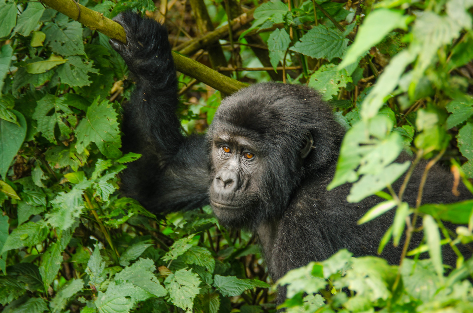 The Bitukura family resides in the Ruhija sector, which lies along the eastern corridor of Bwindi Impenetrable National Park. Access to the area is typically by road from Kabale or Buhoma, followed by scenic drives through highland valleys, tea plantations, and terraced farms. Although the roads can be steep and rugged, they offer travelers a visual introduction to the lush highlands and agricultural patterns that characterize this part of Uganda. The Ruhija trails are quieter and less frequented than the Buhoma sector, providing visitors with a sense of seclusion and an intimate connection to the forest.